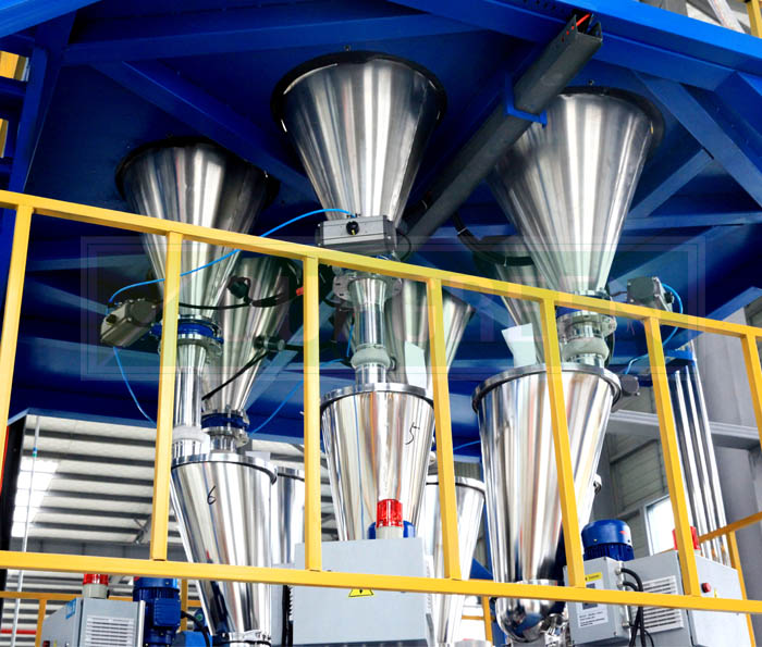 公司的自動(dòng)上料系統(tǒng)采用特制的攪拌上料系統(tǒng),以確保各種原料混合的均勻。自動(dòng)化控制保證系統(tǒng)運(yùn)行穩(wěn)定,按照生產(chǎn)配方將各組分別加入到料倉中,經(jīng)真空上料機(jī)后充分?jǐn)嚢?,后將攪拌均勻的物料加入到擠出機(jī)的料斗中。該產(chǎn)品由公司優(yōu)化設(shè)計(jì),使其能夠適應(yīng)各種型號(hào)的擠出機(jī)組。