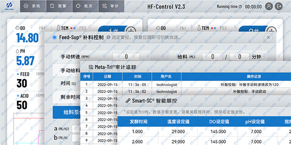 Twin220系列雙聯發酵罐,融合霍爾斯(HOLVES)多項獨家專利技術,實際應用在功能管理系統中,包括H-Mix®攪拌系統、Feed-Sup®補料系統、Smart-SC®智能順控、Meta-Tri®審計追蹤等在內,讓設備真正實現智能自動化管理。