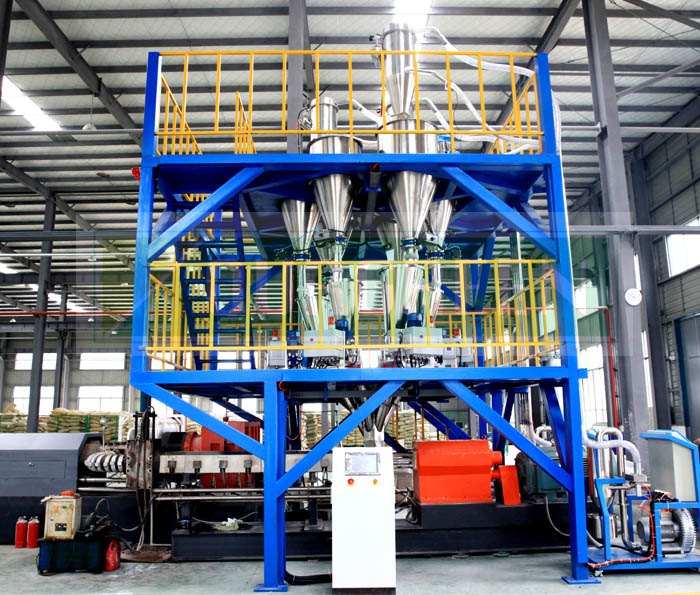公司的自動(dòng)上料系統(tǒng)采用特制的攪拌上料系統(tǒng),以確保各種原料混合的均勻。自動(dòng)化控制保證系統(tǒng)運(yùn)行穩(wěn)定,按照生產(chǎn)配方將各組分別加入到料倉中,經(jīng)真空上料機(jī)后充分?jǐn)嚢?,后將攪拌均勻的物料加入到擠出機(jī)的料斗中。該產(chǎn)品由公司優(yōu)化設(shè)計(jì),使其能夠適應(yīng)各種型號(hào)的擠出機(jī)組。
