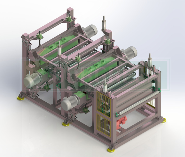 歐格設(shè)計(jì)制造的整平牽引一體機(jī)是控制板材成型的重要部件,該裝置將模具基礎(chǔ)的塑料制品的形狀穩(wěn)定下來并進(jìn)行準(zhǔn)確調(diào)整,以獲得精確、表面光滑的制品。與之為一體的牽引系統(tǒng)用于抽出整平后的板材并消除應(yīng)力,并可有效減少因兩機(jī)放置過遠(yuǎn)而產(chǎn)生的板材彎曲現(xiàn)象,提高成品率。該裝置控制準(zhǔn)確、操作簡便。