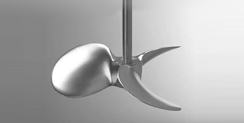 也被稱為推進式攪拌槳,如圖所示。槳葉前面可為平面或凹面,但背面都是凹面。在旋轉時使液體向前方呈軸向流排出,使之在罐內形成循環,用于產生軸向流。這種槳葉循環速度較高,但是循環量較大,攪拌時產生的剪切力較小,但其和徑向流槳葉一樣,均是產生的單向流,因此混合效果較差,常用于低粘度流體,常用轉速范圍為100~500rpm。此類槳式及推進式槳葉對氣體吸收過程基本上不適用,只有在少量易吸收的氣體或要求分散度不高時才能應用。它主要用于液-液體系的混合、使溫度均一化、在低濃度固-液體系中防止淤漿沉降等或者某些特定的厭氧培養。  |