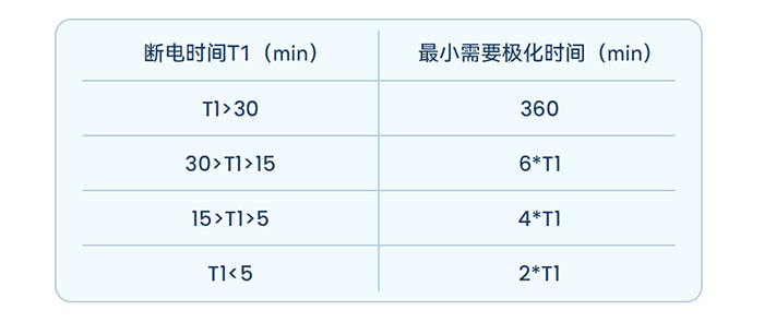 ③ 變送器斷電或電極與電纜線斷開(kāi),最小極化時(shí)間見(jiàn)下表。