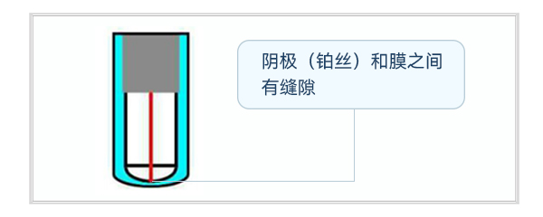 檢查溶氧膜膜片,如果有過(guò)度的突起,如下圖示,使陰極不能接觸到膜片,則必須更換溶氧膜。
